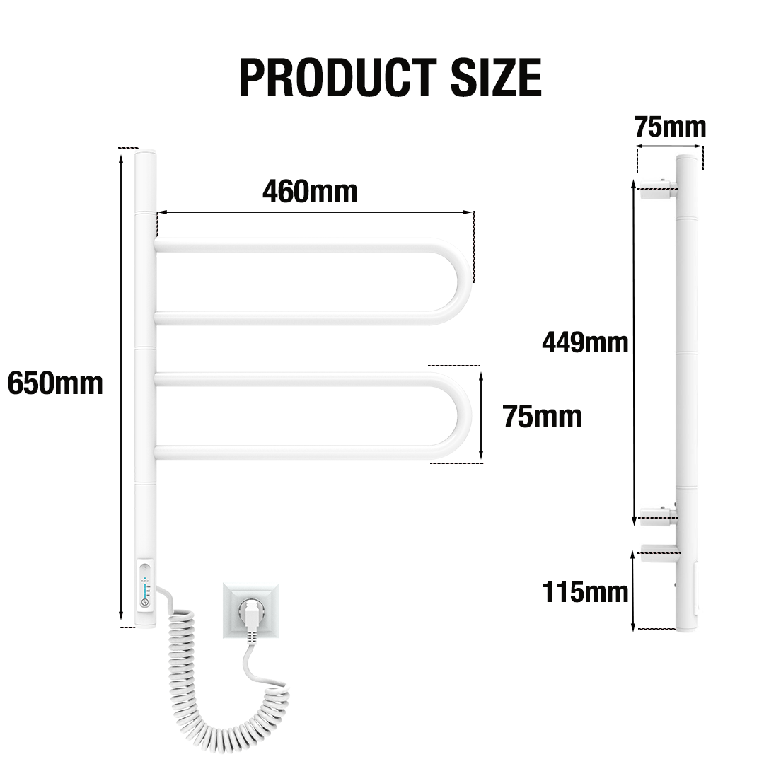 Der Temperaturregler verfügt über drei-Modi und einen Drei-Stunden-Timer. Die maximale Temperaturgrenze beträgt 65°C. Dieser elektrisch beheizte Handtuchtrockner spart bis zu 70% Stromkosten.