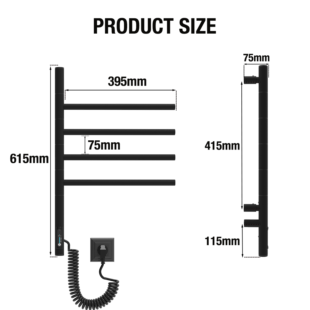 Der Temperaturregler verfügt über drei-Modi und einen Drei-Stunden-Timer. Die maximale Temperaturgrenze beträgt 65°C. Dieser elektrisch beheizte Handtuchtrockner spart bis zu 70% Stromkosten.