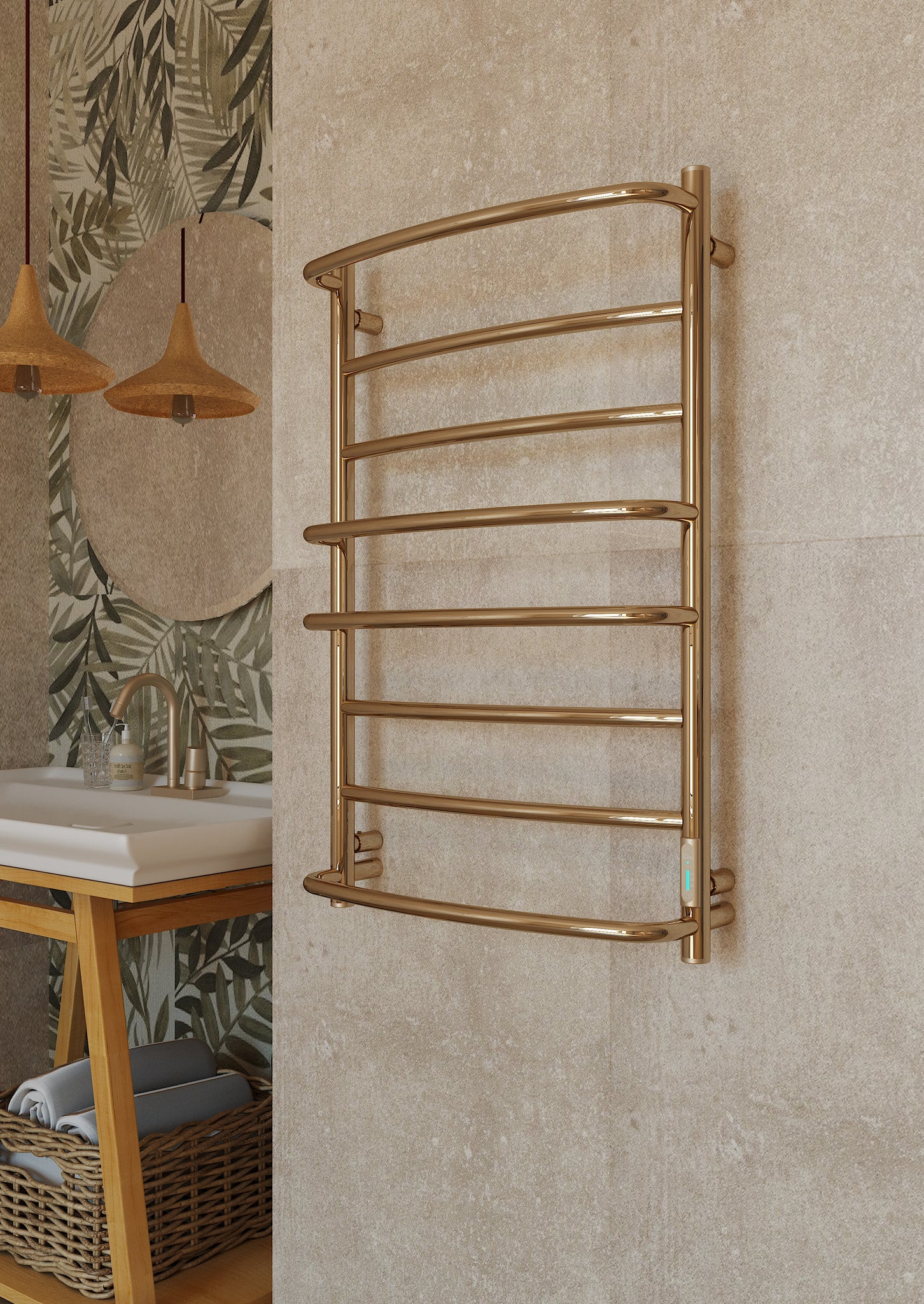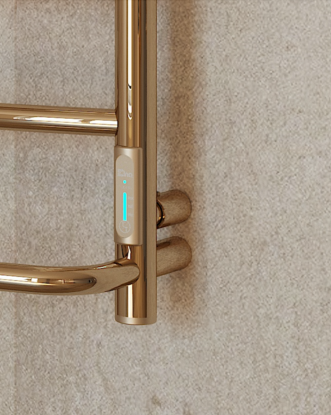Following global interior design trends, we have added a bathroom heater with a beautifully glossy gold coating for consumers who prefer warm metallic tones to our assortment. The electric bathroom dryer is made of stainless steel, and its surface is gold-plated using the PVD method. The perfectly polished gold coating maintains its technical characteristics for decades, and the mirror-like surface in an elegant golden shade enhances the luxurious atmosphere of the bathroom interior.