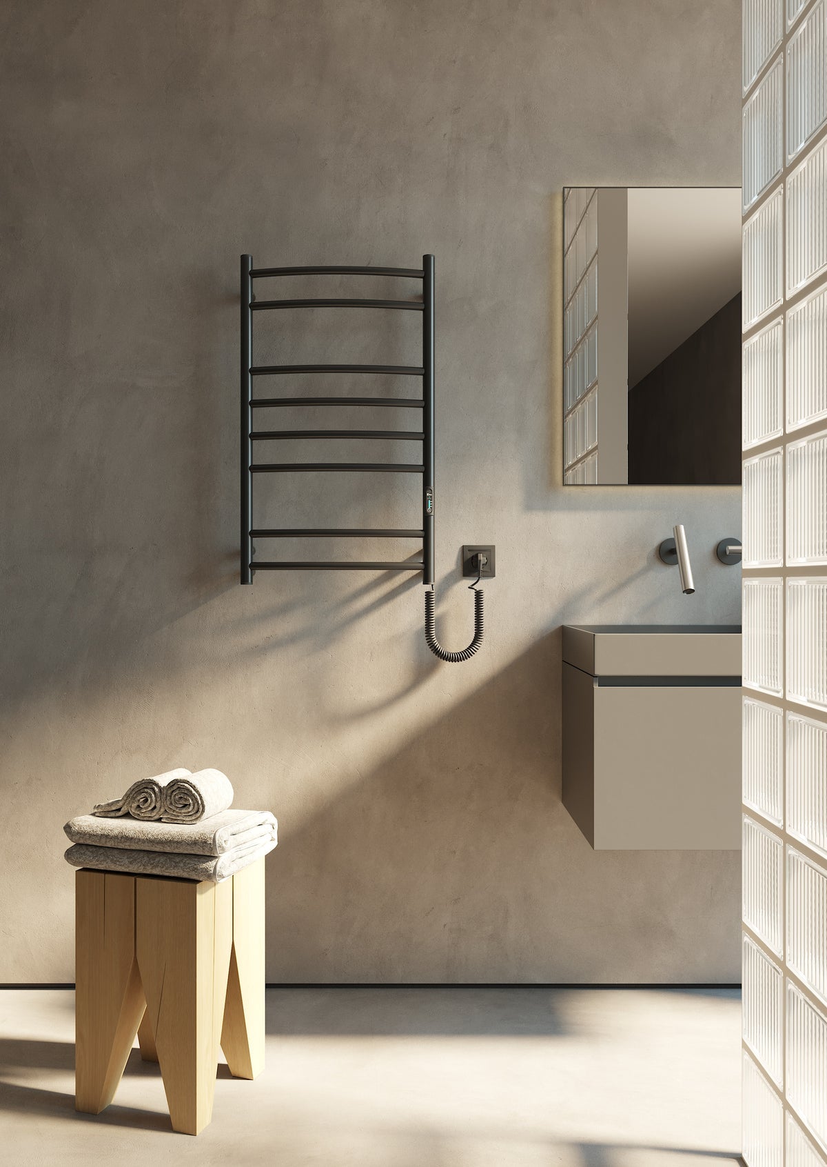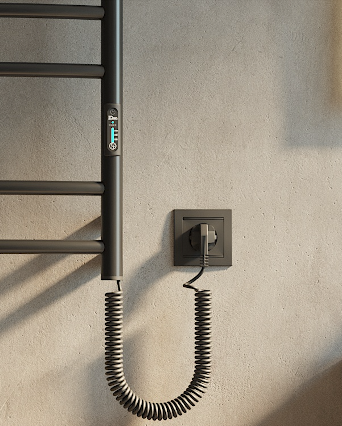 Following the world-wide trends in bathroom interior design, we present You an electric towel rail in black matte finishing. Perfect design decision for the customers who are totally in love with the industrial colors and concise shapes of metal.